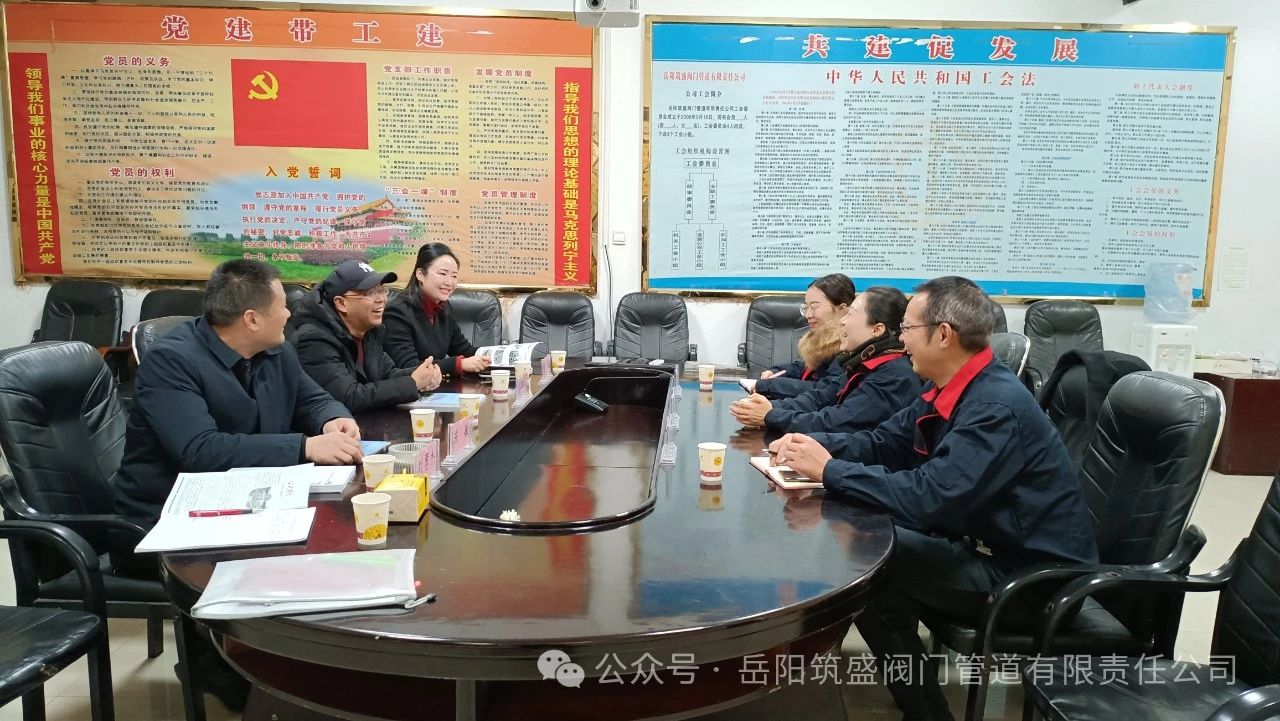 岳筑宣2024年2月20日訊:2024年2月20日上午9點,岳陽市工商聯(lián)黨組成員副主席葛取兵一行蒞臨我公司走訪調(diào)研;我公司董事長鄧晴就公司2023年生產(chǎn)情況,2024年工作安排及公司以后發(fā)展方向的思路,作了詳細匯報。